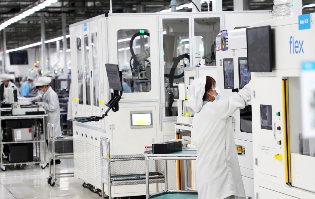 伟创力电子技术(苏州)有限公司苏虹路工厂生产车间。(受访者供图)