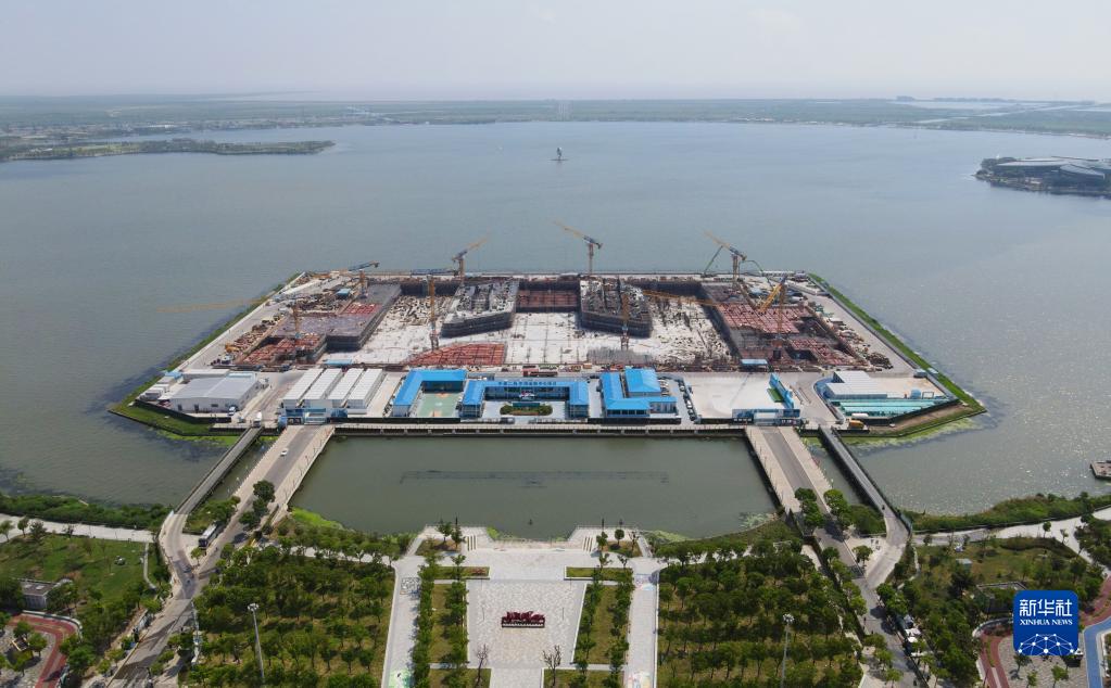 8月29日,空中俯瞰临港西岛金融中心项目工地(无人机照片)。