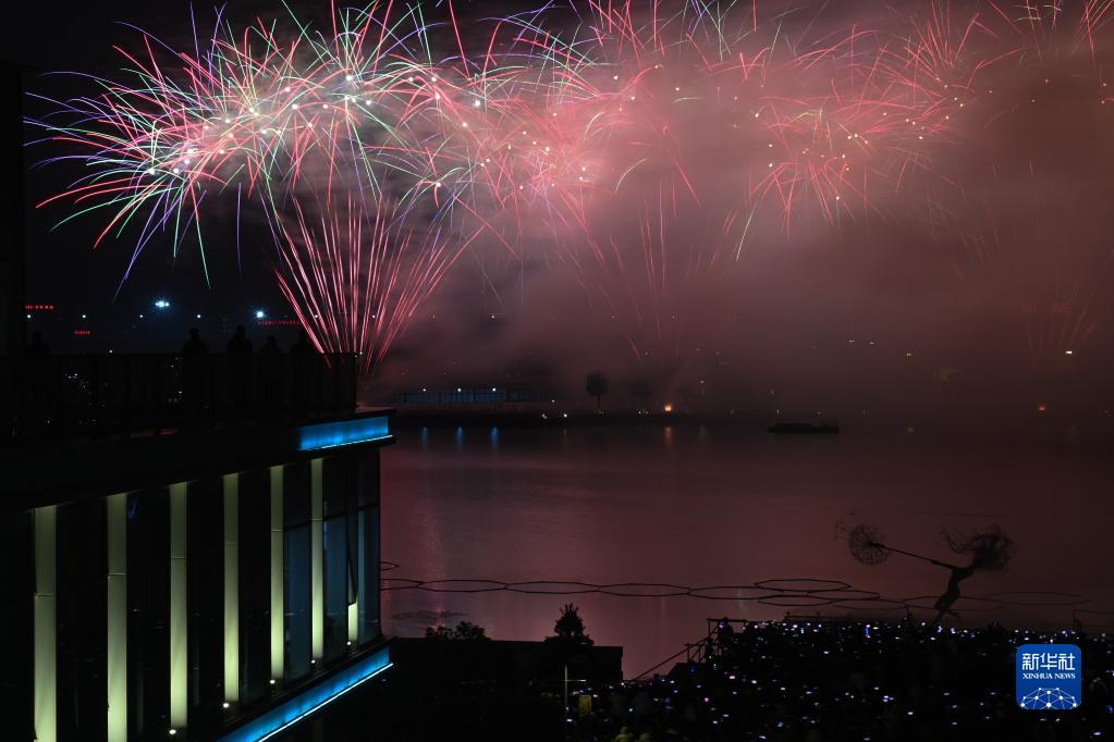 当晚,浙江省杭州市临平区在东湖公园举办“迎亚运,庆元宵”烟花秀活动。