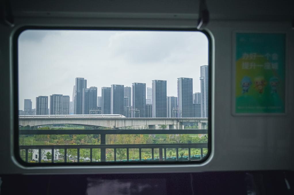 9月5日,杭州地铁“亚运号”专列通过杭州亚运村。新华社记者 江汉 摄