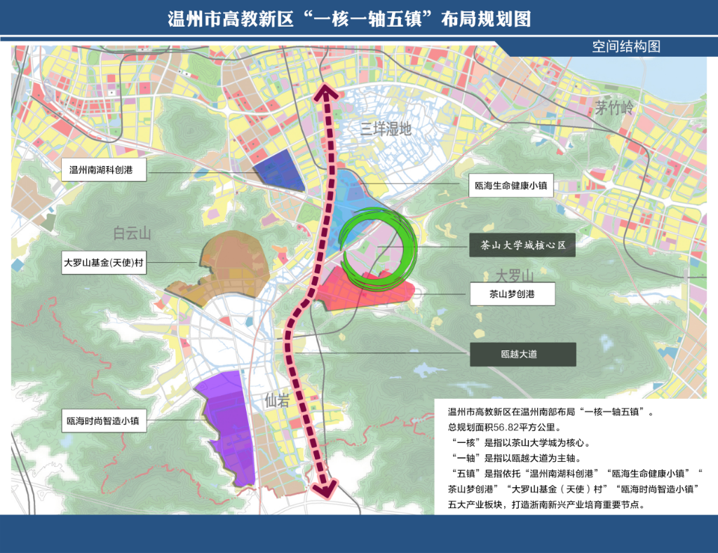 如今,走进温州市高教新区,56.82平方公里的土地已“写满”了“答卷”——瓯海生命健康小镇、中国(温州)数安港、茶山梦创港、大罗山基金天使村、瓯海时尚智造小镇等,这里已然成为了科创热土,“磁场”效益显现。