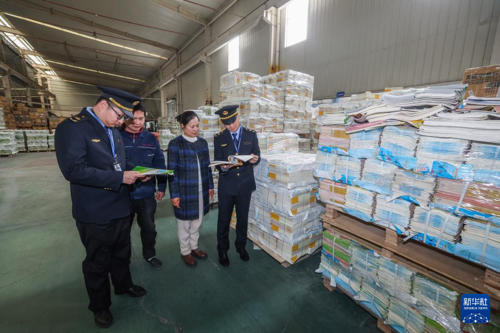 3月18日,诸暨市文化市场行政执法队工作人员在检查印刷企业教辅教材印刷品内容。