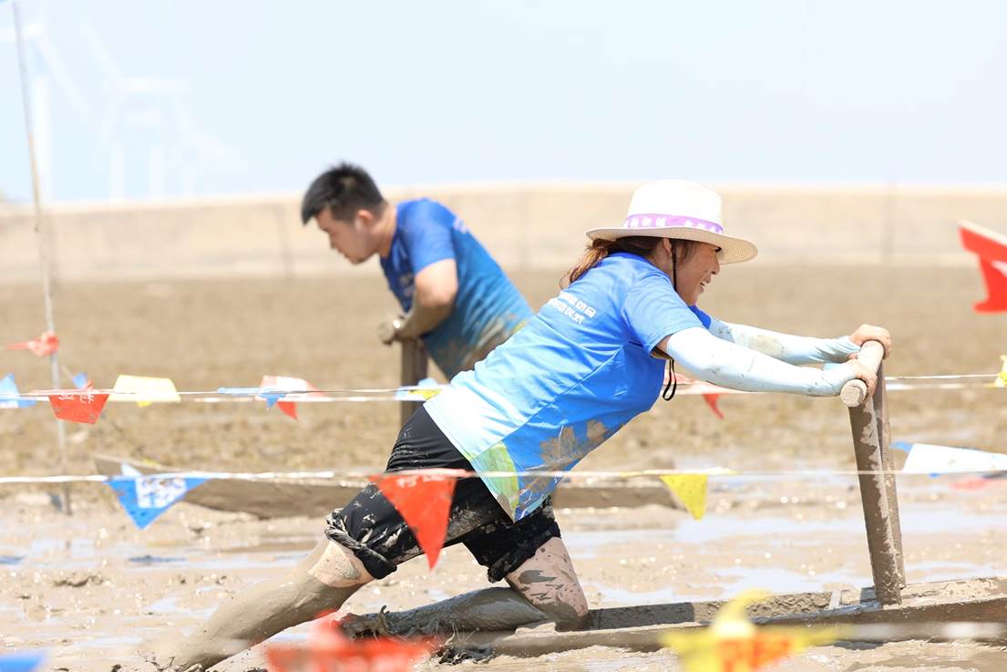 在滩涂大争夺环节中,一个个“泥人”在圆形圈内四散开来,屏气凝神,仔细观察对手,轻易不敢动。来自同人体育的邱浩杰忽然如闪电般冲向对手,至此,一场混战就开始了。大家你争我抢,比力量,拼速度,又要保证自己在滩涂上奔跑不摔倒,又要去争夺对方背篓里的物资,忙的不可开交。最终在该项目的男子组中,来自象山的胡航波得到了第一。