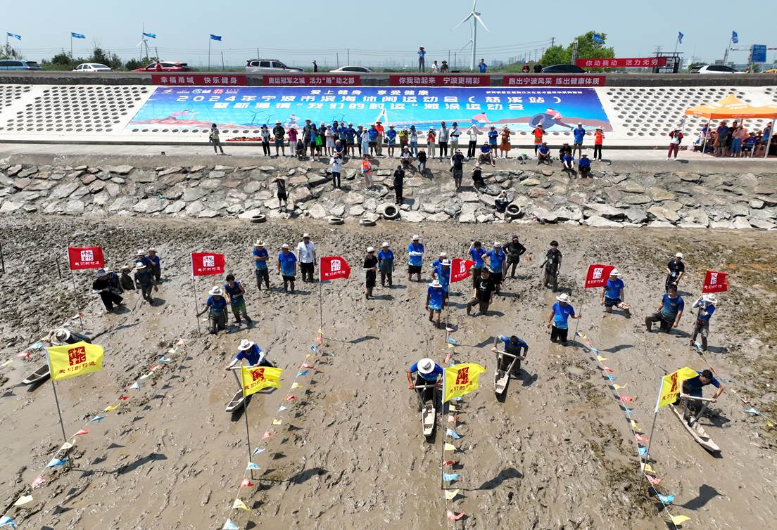 8月9日,2024年宁波市滨海休闲运动会(慈溪站)暨新浦镇文化旅游季启动仪式在慈溪市新浦镇十一塘火热开场。本次活动以“爱上健身 享受健康”为主题,集结了来自全市的19支代表队、200余名参赛运动员,在泥艋接力赛、滩涂大救援、滩涂大力士、滩涂大丰收、滩涂大争夺等5个项目上展开速度与力量的碰撞。