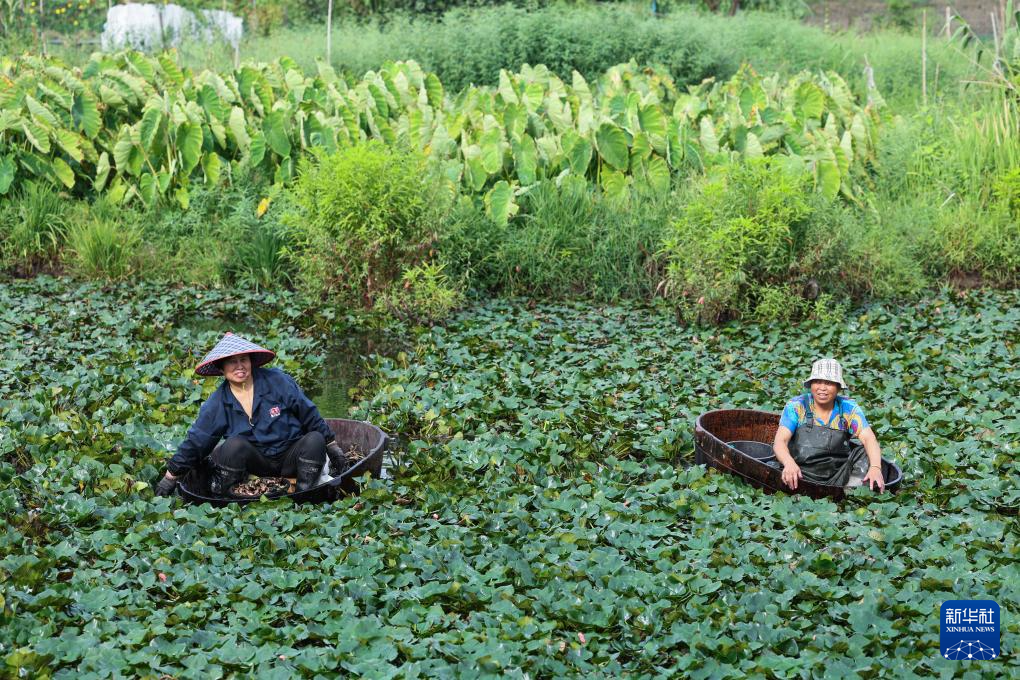 当日是处暑节气,浙江省湖州市吴兴区东林镇农户种植的菱角也进入了成熟期,农户们划着菱桶在水塘里采摘菱角,成为水乡一道特有的风景线。