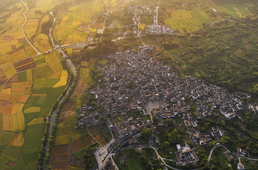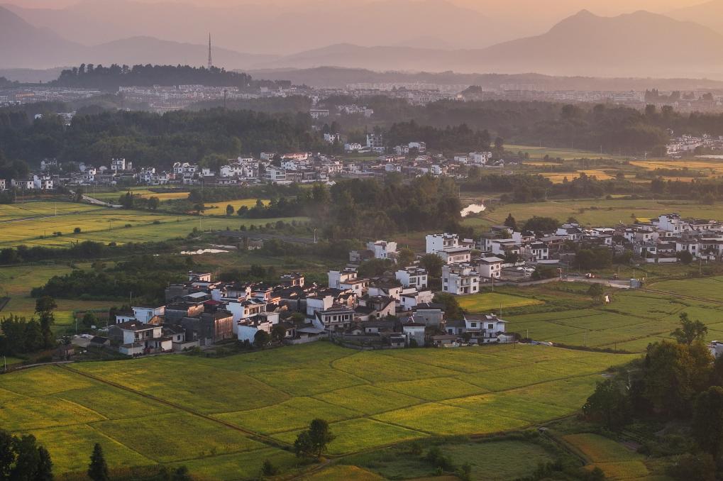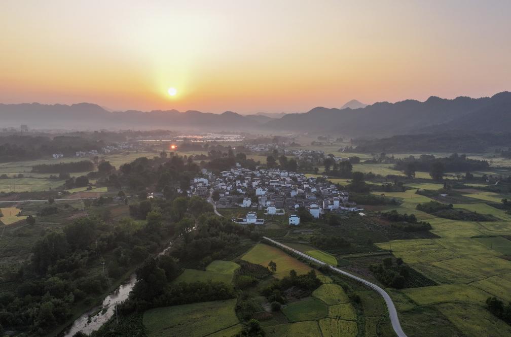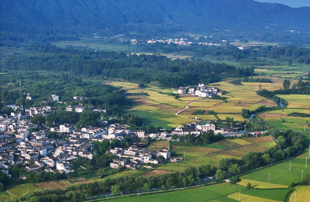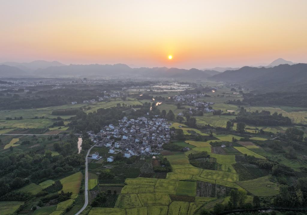 近日,在安徽省黄山市黟县碧阳镇南屏村,金色的稻田、错落有致的村庄与蜿蜒的乡村道路相映成景,勾勒出一幅美丽的秋日田园丰收画卷。