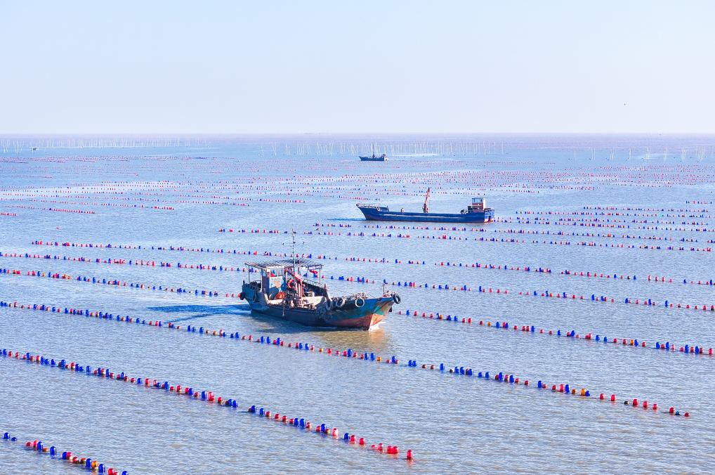 近年来,江苏连云港市立足临海资源优势,大力发展现代化海洋牧场,推动海域鱼类、紫菜、太平洋牡蛎等生态养殖,促进当地渔业增效和渔民增收。