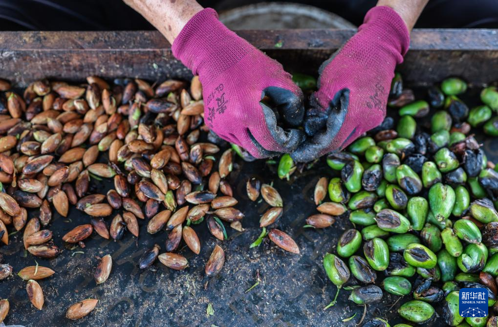 秋意渐浓,浙江诸暨市赵家镇一年一度的香榧采摘季如期而至。赵家镇位于浙江省诸暨市东北部,是著名的香榧产区,香榧种植面积约5万亩,全镇三分之一的人口从事与香榧相关产业。