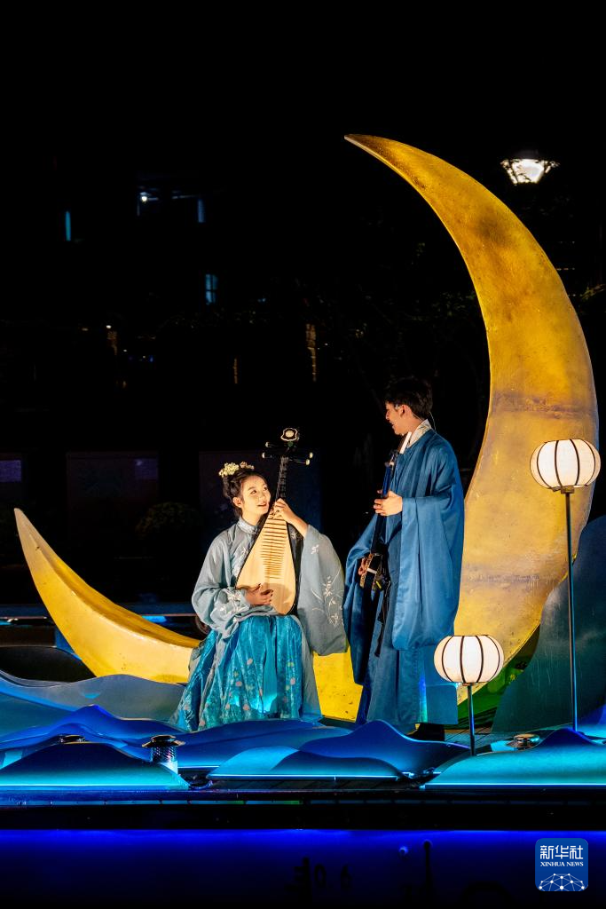 9月23日,在无锡市古运河沿岸,演员为游客表演。