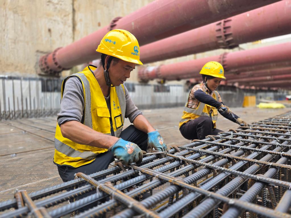 在无锡地铁6号线和风路站施工现场,施工人员正进行中板下翻梁的钢筋绑扎作业。据介绍,目前该站主体结构施工已完成近半,建设者们正全力冲刺后续节点工程。