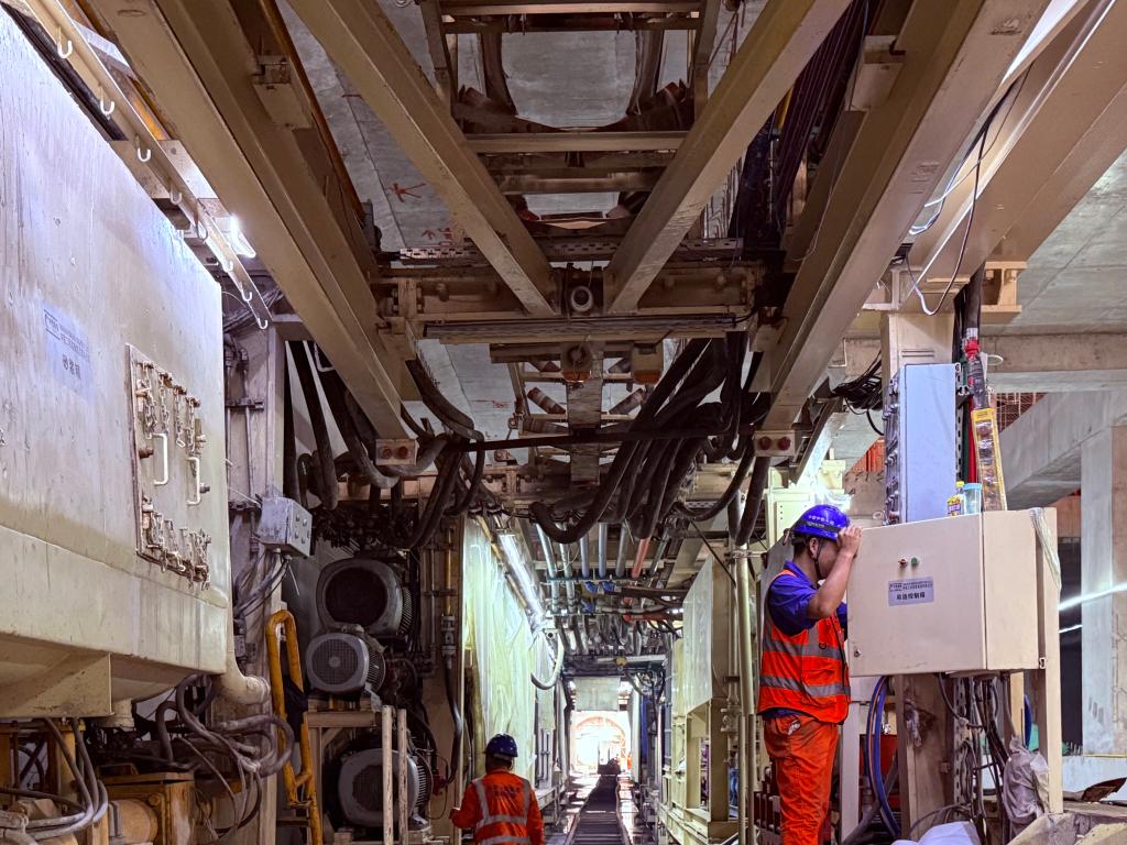 走进无锡地铁5号线8标项目施工现场,中铁一局技术人员正对盾构机进行关键参数检测调试。不久前,该标段坊明路站至新阳路站区间左线已顺利贯通,目前正为下一区间的盾构掘进开展冲刺准备。