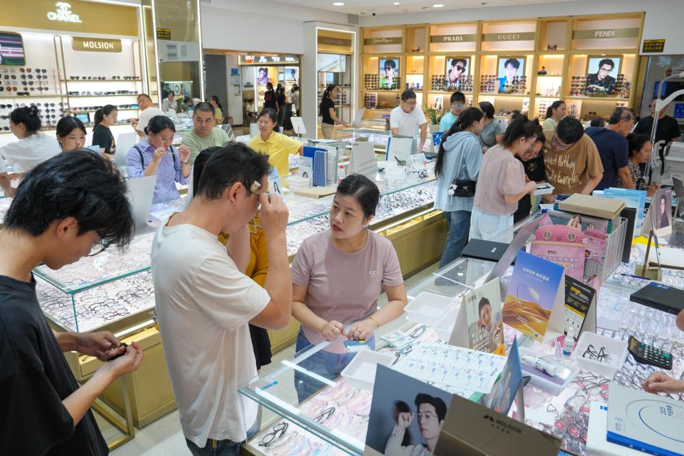 眼镜产业是丹阳的一张名片。走出丹阳火车站,一街之隔的“中国丹阳眼镜城”招牌分外惹眼,眼镜城外,车水马龙,眼镜城内,人头攒动。带着天南海北口音的采购商、消费者在这里挑选商品。