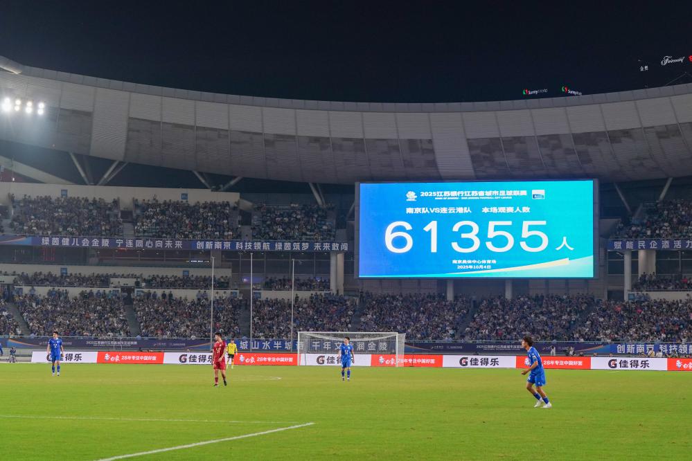 10月4日,大屏幕显示本场比赛共有61355名球迷到场观赛。