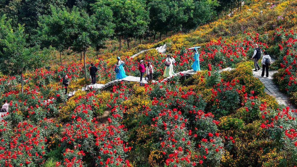 此时,北方已经进入深秋,霜染红叶,如霞似锦,别有一番秋日美景,而此时的南方刚刚入秋不久,红黄夹杂、俏丽多姿。
