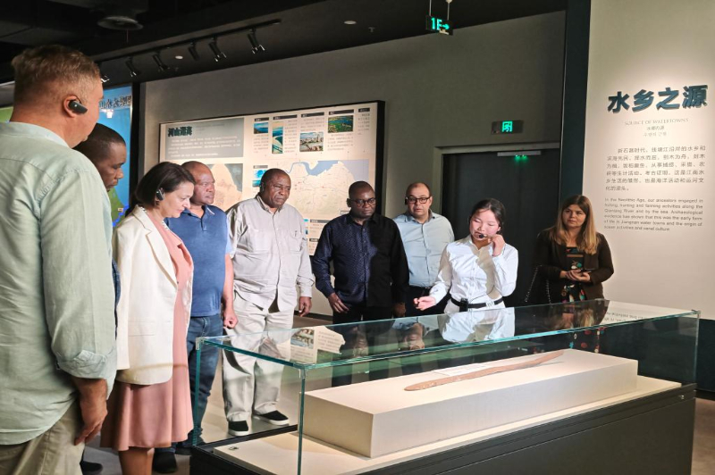 浙东运河是中国大运河南端、海上丝绸之路南起始端。交汇东西经济、涵育人文纽带,这条底蕴深厚的运河的故事,让参访绍兴浙东运河博物馆的使节们很感兴趣。