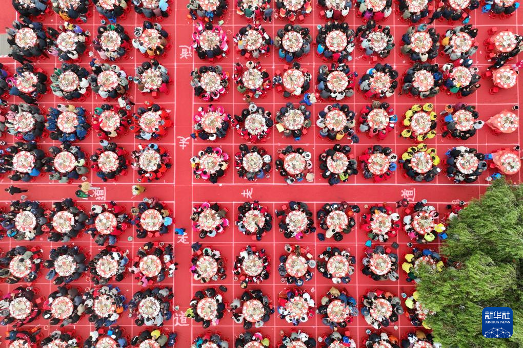 10月19日,人们在江苏省淮安市洪泽区渔人湾浴场参加品蟹宴(无人机照片)。