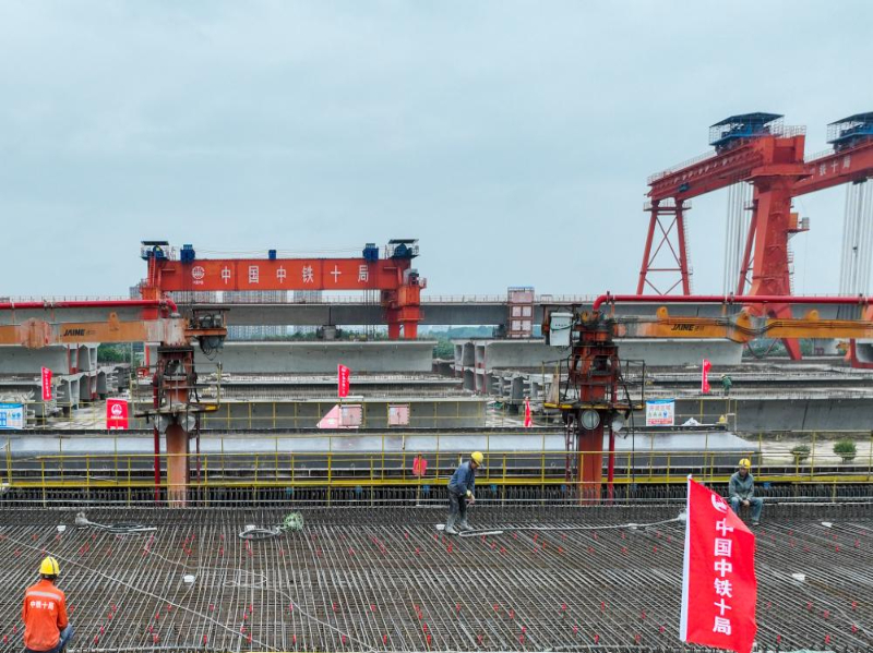 近日,在沪渝蓉高铁扬州段,由中铁十局参建的扬州制梁场完成辖区内870榀箱梁预制任务,为下一阶段的架梁施工、桥面建设奠定基础。沪渝蓉高铁是国家“八纵八横”高速铁路网沿江通道的重要组成部分,对于推动长江经济带发展、优化区域综合交通结构具有重要意义。