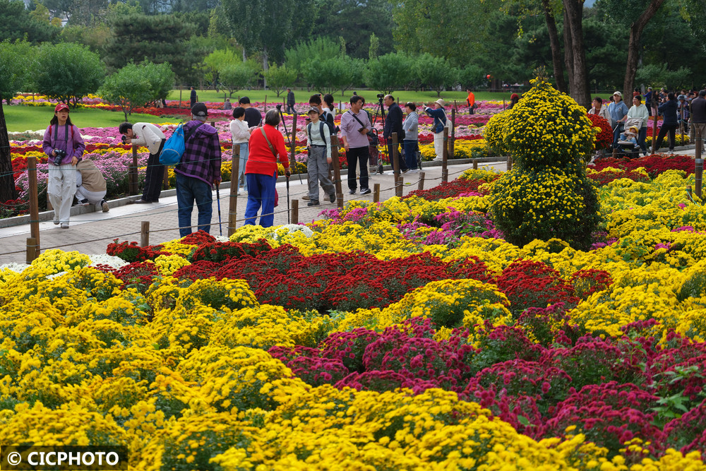 ↑2025年10月11日,人们在北京国家植物园观赏菊花。CICPHOTO/郭俊锋 摄