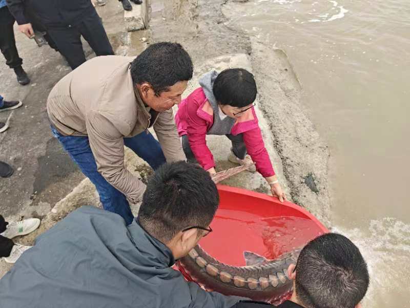 目前,监测人员在提取一小片中华鲟鳍条标本后,已将其放生。标本已送往相关研究机构,以确定是否为野生中华鲟。
