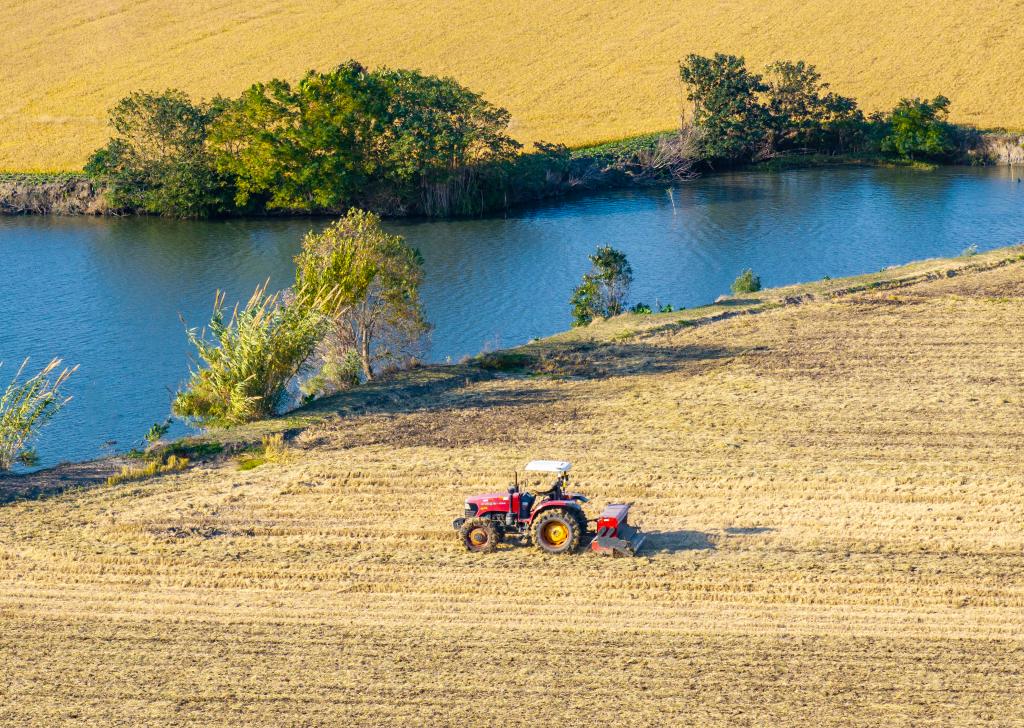 11月19日,在江苏省常州市金坛区金城镇,农机在田里播种小麦。