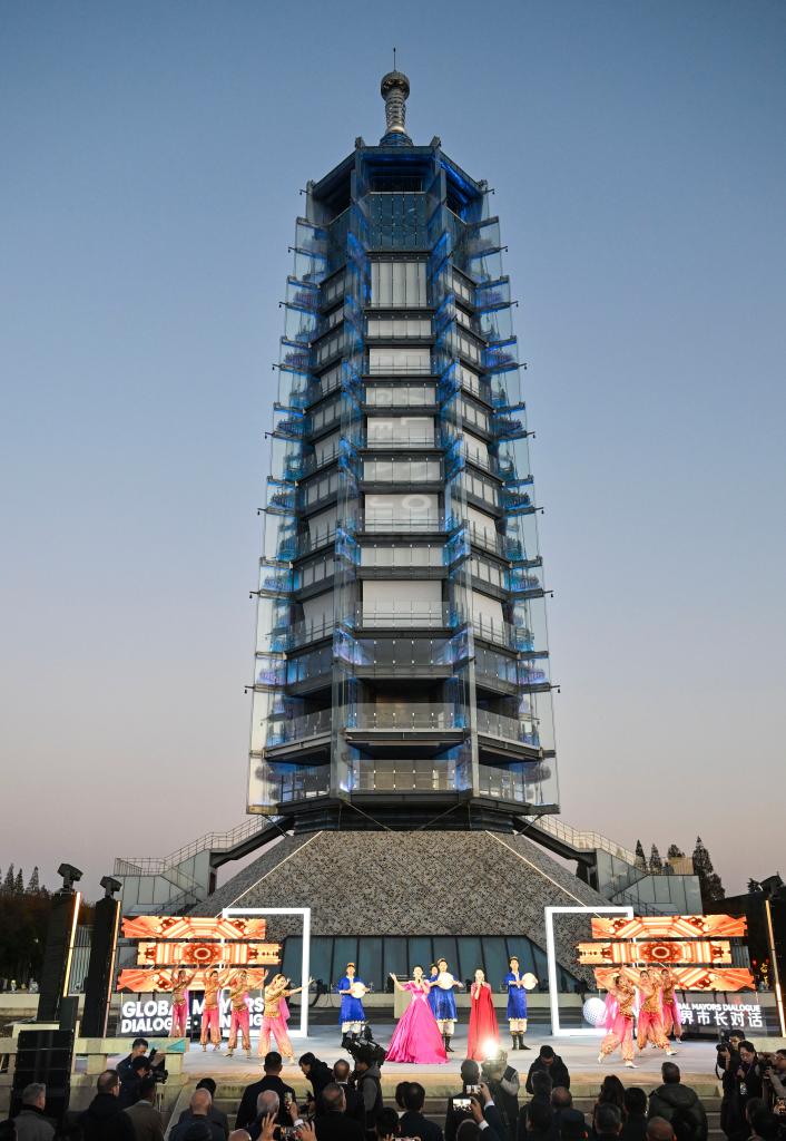 11月19日,演员在“世界市长对话·南京”活动开幕式上表演。