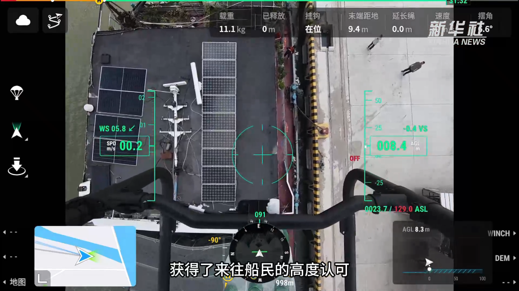 在淮安市清江浦区黄码港,无人机驾驶员袁梓皓操作FC-30运载无人机,将生活物资精准送达船民手中。这条“空中快线”自1月投入使用以来已飞行近300架次,载着30公斤的米面油,破解了港区“最后一公里”的物流难题。