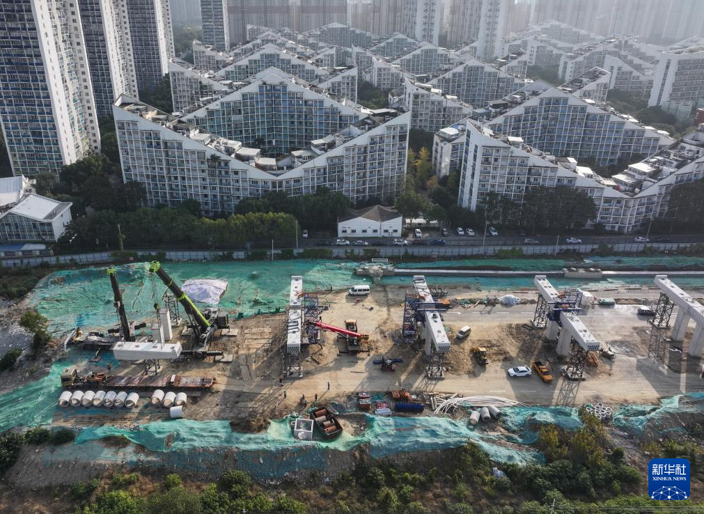 这是11月24日拍摄的312国道无锡凤翔路至广石路段工程11标施工现场(无人机照片)。