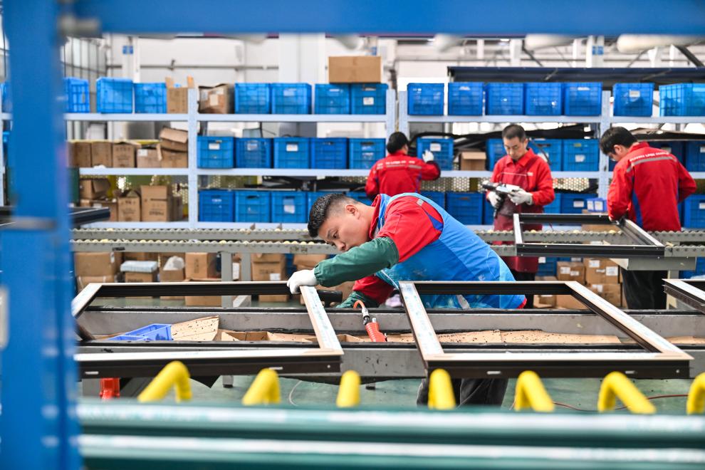 11月25日拍摄的中亿丰罗普斯金材料科技股份有限公司门窗智能生产线。