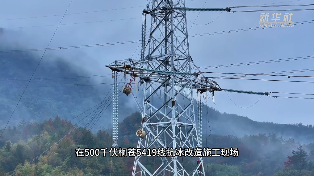 在500千伏桐苍5419线抗冰改造施工现场,国网绍兴供电公司短时间内多措并举进一步提升500千伏骨干电网抗极端天气能力,提高设备安全运行水平,确保电网安全稳定运行。