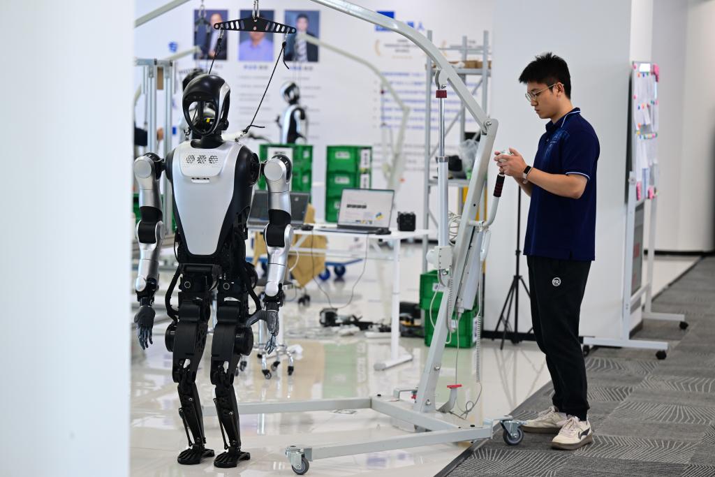 在合肥乐聚机器人技术有限公司,工程师们致力于将公司生产的“夸父”机器人应用于工业生产工作。他们在实验室进行真实环境模拟测试,当机器人运行稳定后,就可以应用到实际场景。目前,“夸父”机器人已经在一些工厂进行测试,进行物品搬运、零件拣选等工作,不断调试、迭代,让机器人更适应现代化工厂的需求。