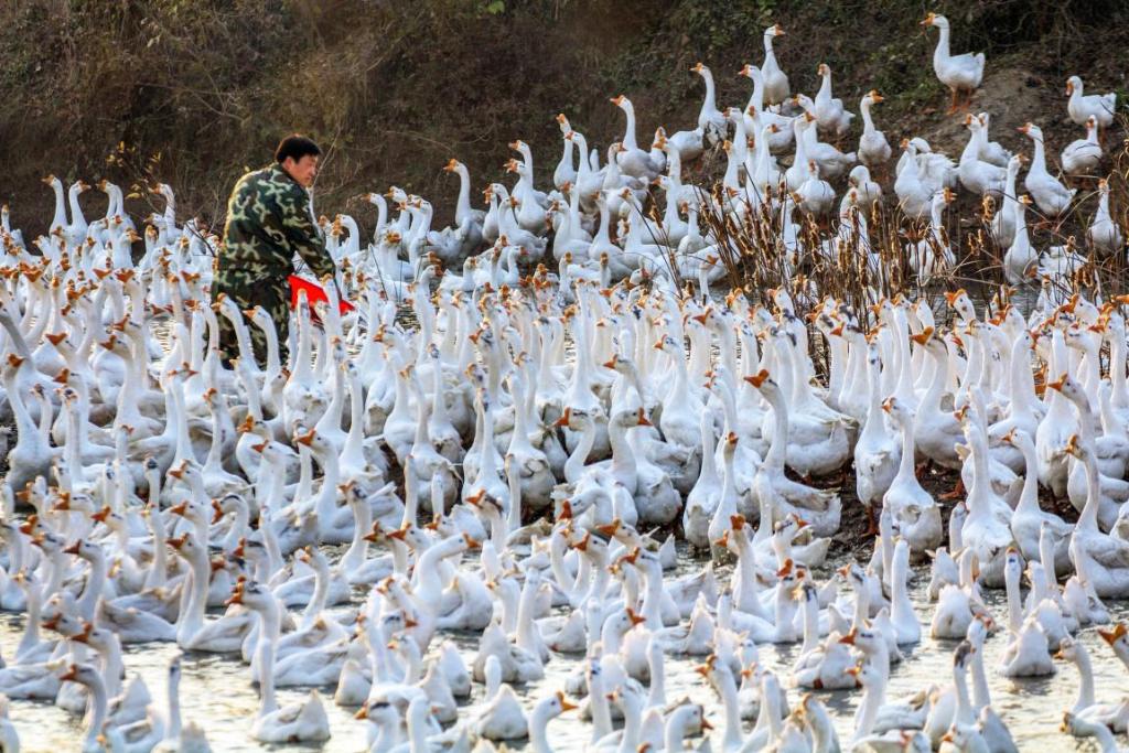 “皖西白鹅”这张地方名片越擦越亮,从规模养殖到延长产业链,从科学繁育到产品研发,从“卖原料”到“创品牌”,老传统成了大产业。2024年,六安市鹅饲养量1884.3万只,其中白鹅1404.3万只、朗德鹅480万只,综合产值约170亿元。