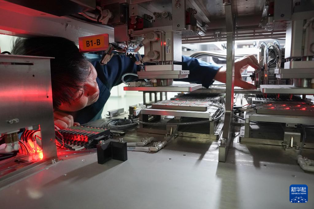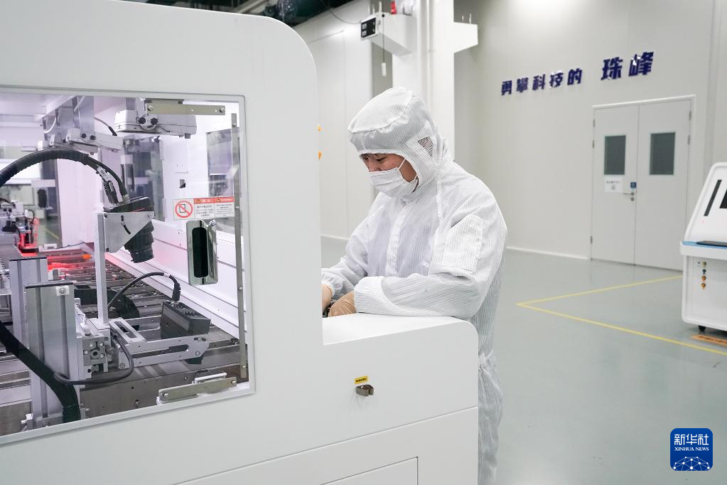 11月26日,在苏州华兴源创科技股份有限公司,工程师对先进封装芯片进行测试。