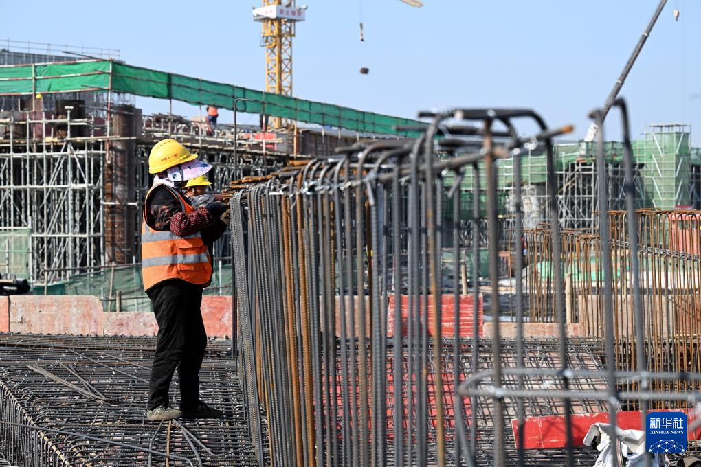 11月30日,工人在淮宿蚌城际铁路淮北西站站前广场项目施工现场作业。