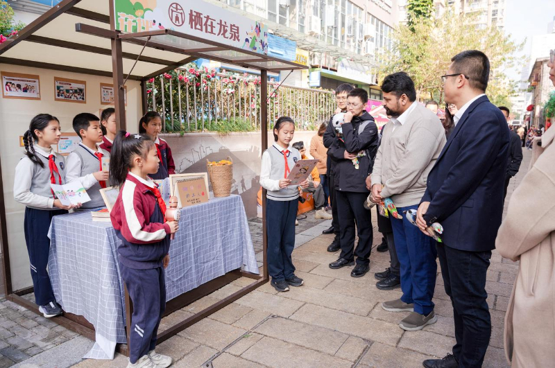 龙泉巷百余米长,是鹿城区老街区,去年起实施“乱点整治+微改精提”,让老巷换新颜,玫瑰花束、文创墙绘、艺术雕塑等装点街区,也带动街巷业态提升。“我们定期联合辖区内的学校每月在龙泉巷开展各种主题活动,比如跳蚤集市、非遗制作、学生绘本集市、民乐快闪等活动。”大南街道相关负责人表示,以“场景重构”理念,织就“一米高度友好网络”,也让城市儿童健康成长。