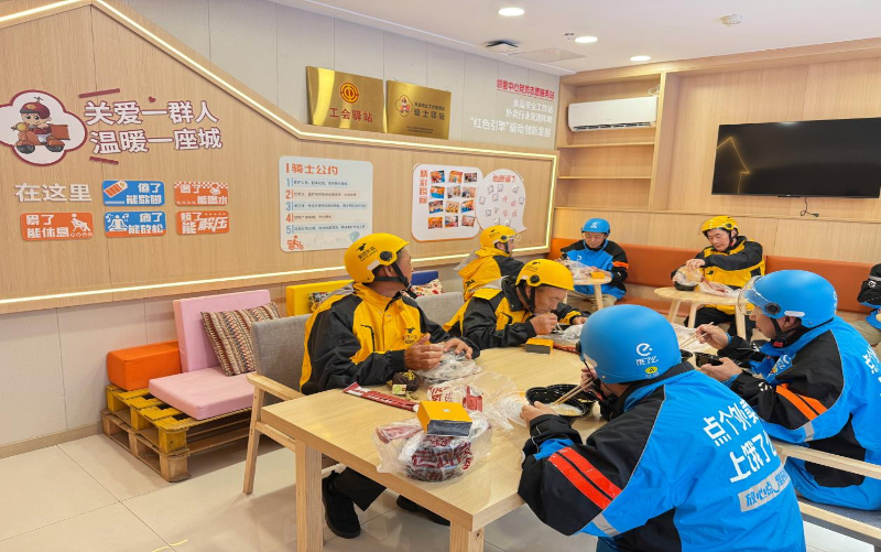 在方洲邻里中心,“幸福邻里圈·骑士驿站”已成为附近新就业群体的“加油站”。“以前在送餐间隙,只能在马路边吹风站着,现在可以坐下来休息一会,还有热水、微波炉,甚至能看书、充电,真的很贴心。”一位在园区工作的外卖骑手小陈说道。