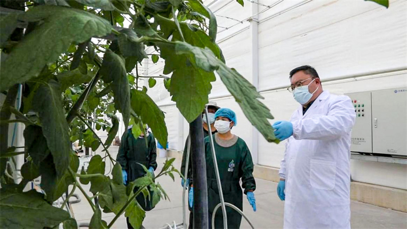冬日清晨,安徽省淮北市烈山区古饶镇安徽兴丰绿港智慧农业产业园内,温室无土栽培的番茄和水果黄瓜挂满了枝头。作为技术指导型乡村产业指导员的陆启周正在给身旁的村民讲解种植技巧:“无土种植,营养液配比是关键……”