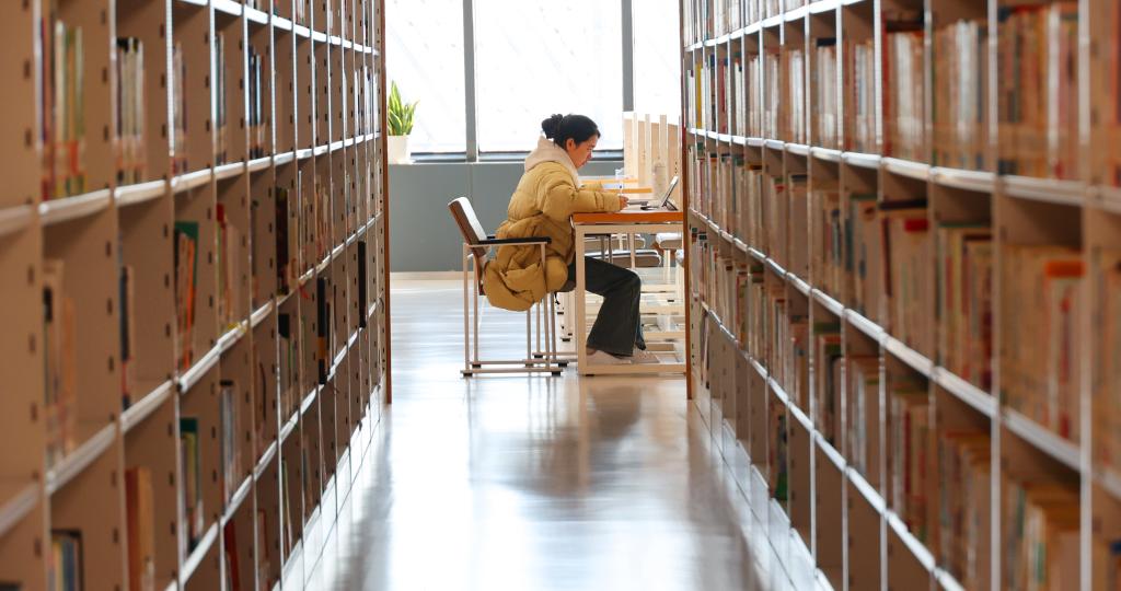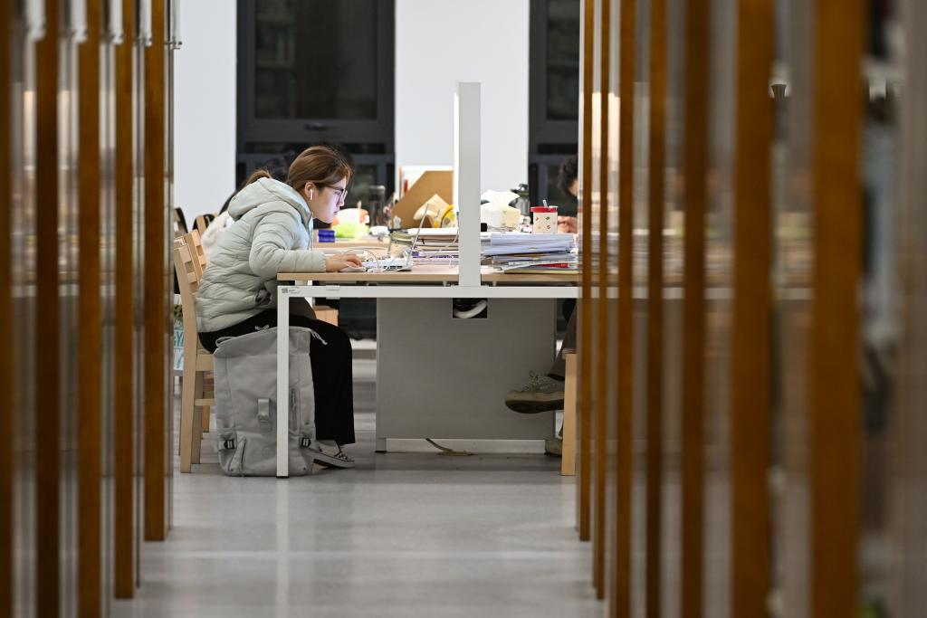 12月17日,学生在南京林业大学图书馆内复习备考。
