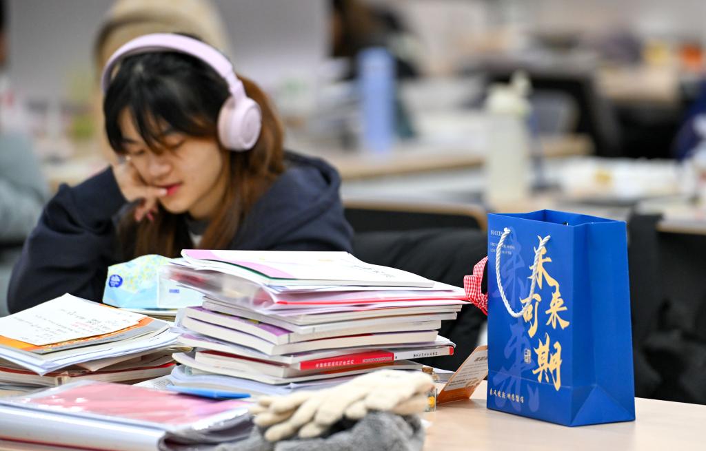 12月17日,在江苏省连云港市图书馆,考生在加紧进行复习巩固。