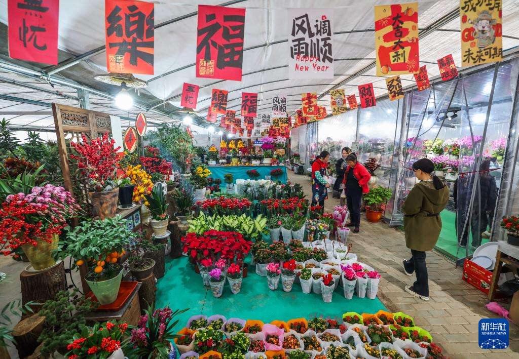 12月23日,顾客在绍兴花市里选购各类年宵花卉。
