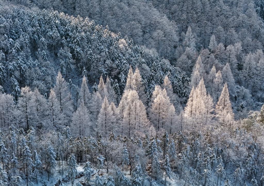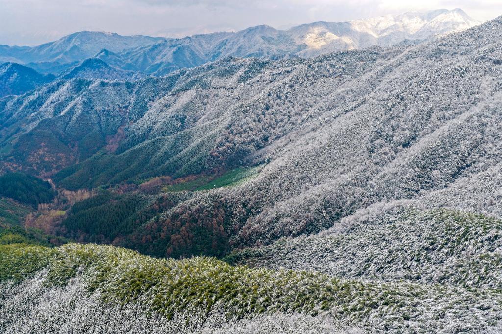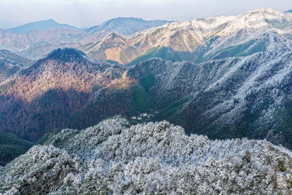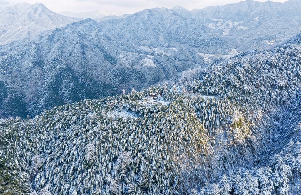 以上图片:2026年1月2日在安徽省黄山市黄山区谭家桥镇箬岭古道拍摄的雪景。(无人机照片)CICPHOTO/施亚磊 摄