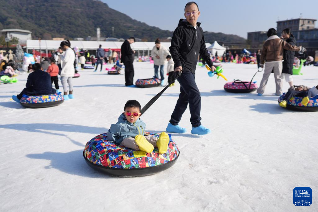1月9日,位于浙江杭州的大运河杭钢公园开启冰雪嘉年华,近万平米冰雪世界吸引市民前来游玩。