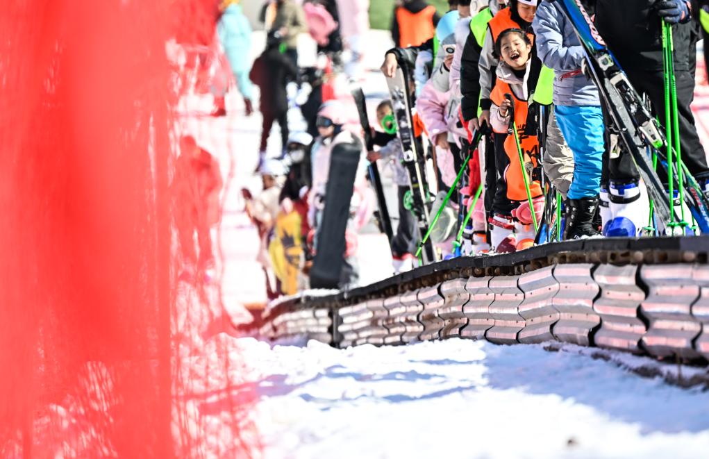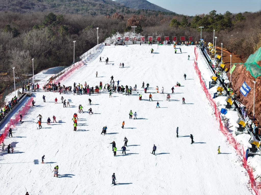 近日,江苏省句容市宝华山滑雪场吸引许多来自长三角地区的游客前来享受冰雪乐趣。
