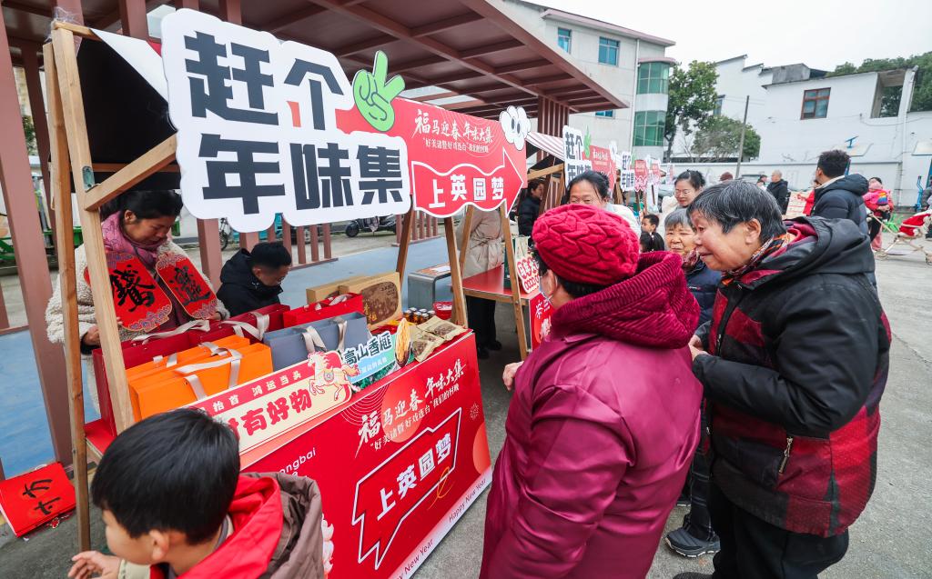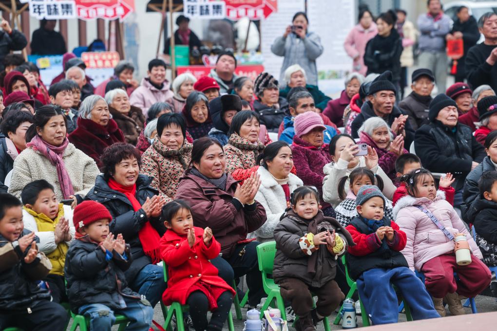 1月23日,浙江省诸暨市东白湖镇在镇乐龄中心举办“福马迎春”年味大集暨“好美诸暨 好戏连台”村晚活动。舞台上村民们自编自演的越剧、舞蹈、旗袍秀等节目精彩纷呈,活动现场同步开展了打麻糍、书法送福、非遗竹编、年画拓印等一系列体验活动以及展示当地农特产和文创产品的“村村有好物”大集等,在欢乐喜庆的气氛中迎接新春。