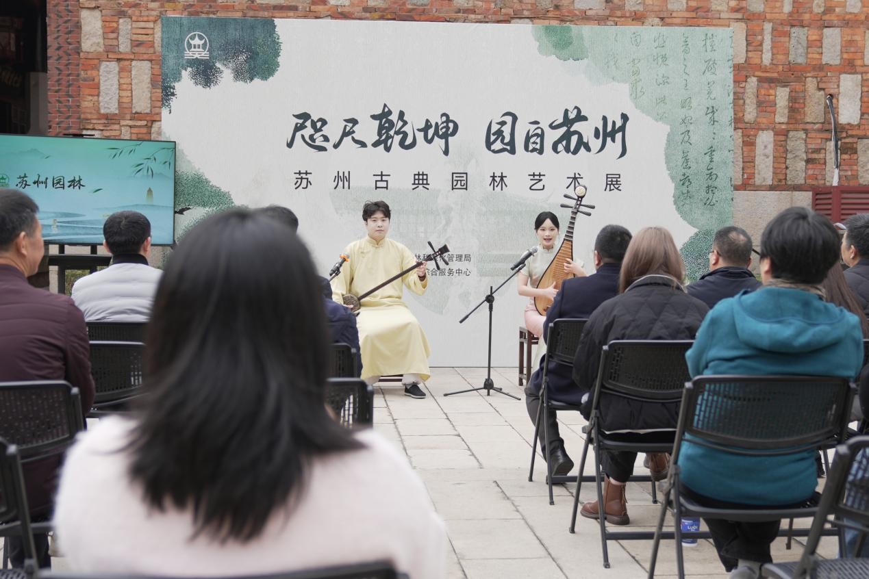 活动现场,一段韵味悠长的苏州评弹表演惊艳亮相,将江南雅韵与闽南风情巧妙融合;苏州园林宣传片《走进园林》,则让观众直观感受江南园林的美学与非遗魅力,为两地园林文化交流提供可视化的对话载体。苏州园林推介官还向泉州市民游客全方位介绍了苏州园林的四季之美,展现园林造景的时序智慧。展览通过“文字+摄影”的展陈方式,引领观众感受“咫尺之内,再造乾坤”的艺术境界,深度诠释苏州古典园林的艺术精髓与文化底蕴,同时,通过搭建园林艺术互鉴平台,深化苏州和泉州两地世界文化遗产保护的交流合作,让泉州民众近距离感受苏州园林魅力。