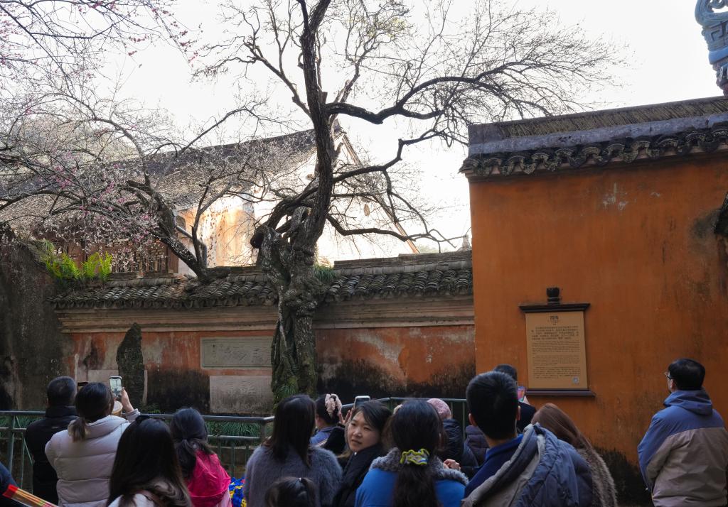 近日,浙江省天台县国清寺的隋梅盛开,引来不少游客观赏。国清寺隋梅是中国现存最古老的梅树之一,树龄逾1400年,如今依然生机勃勃。