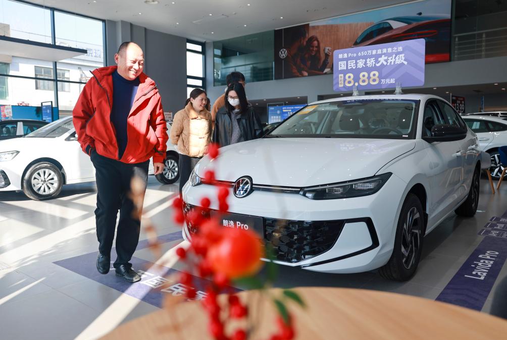 2月21日,消费者在江苏省泰兴市一家汽贸城内的4S店选购车辆。