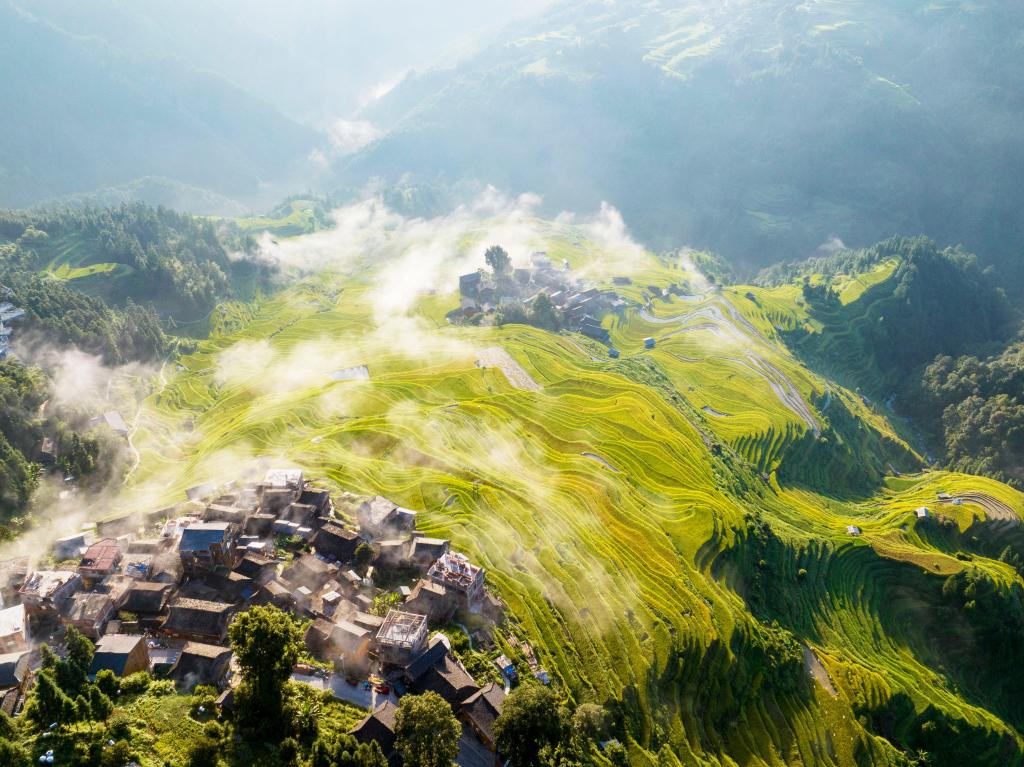 ↑这是贵州省从江县加榜乡加车村(无人机照片,2025年5月1日摄)。加车村入选第二批中国传统村落,以梯田景观和苗族吊脚楼群著称。