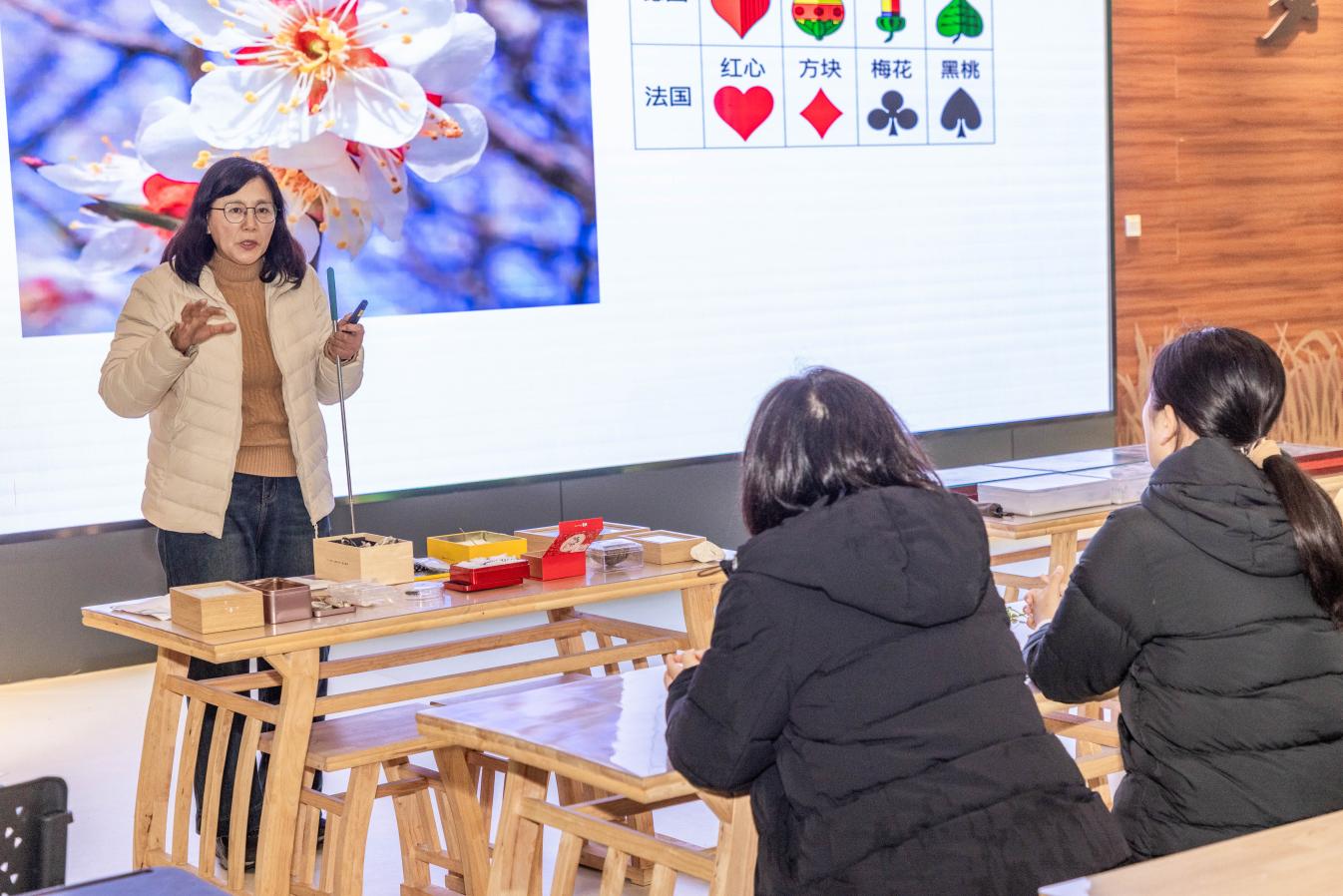室内的美学小课堂从颜色、形状、气味等多个维度,解读植物与动物的美学理论。同时,在老师的带领下,大家细致观察乌桕、薰衣草等植物标本以及蝴蝶、昆虫等动物标本,领略不同季节、不同物种所呈现的生命之美。