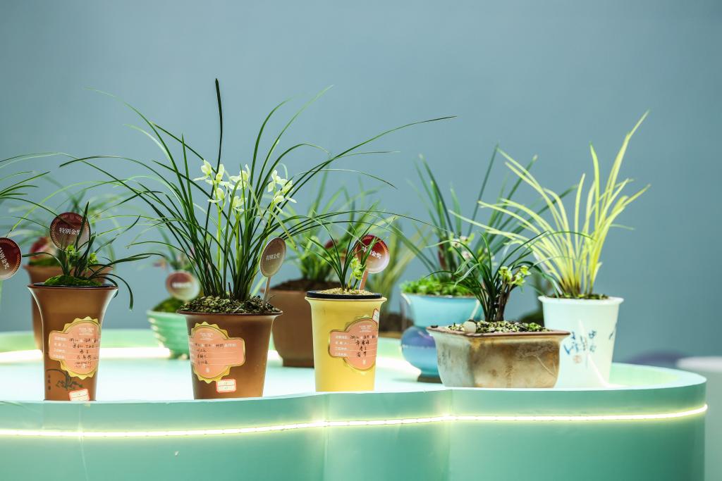 这是3月13日在春兰大集“花盒”艺术空间拍摄的各类兰花创意组合盆栽。