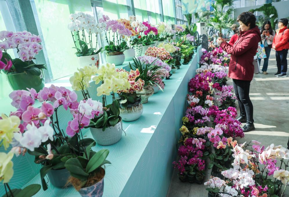 这是3月13日拍摄的春兰大集现场展示的兰花。